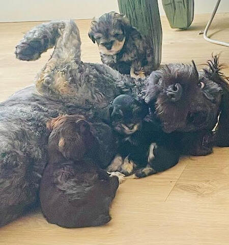 | Do you have any pets? | I have a very friendly dog (pictured above babysitting a litter of puppies) and two cats, all of which will be slowly introduced to your dog. |
